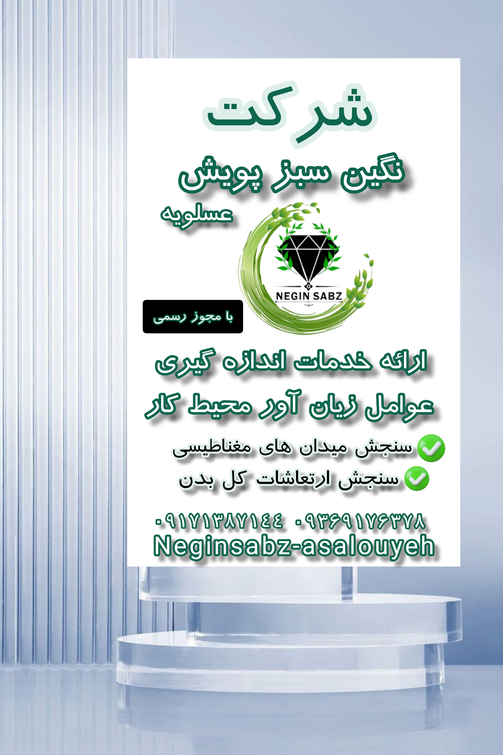 شرکت نگین سبز پویش عسلویه با استفاده از نیرو متخصص بهداشت حرفهای با هدف ارائه خدمات تخصصی اندازه گیری عوامل زیان آور محیط کار آماده ارائه خدمات تخصصی بهداشت حرفه ای به کارفرمایان محترم می باشد.