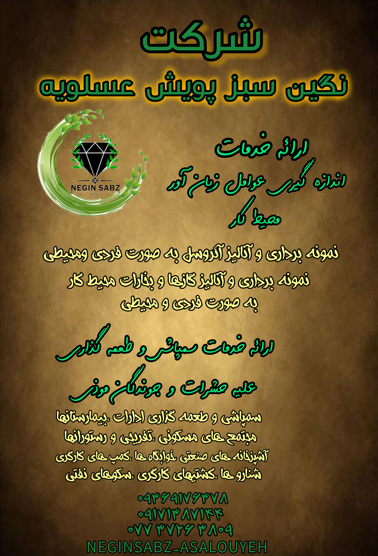 اگر شما در عسلویه و یا اطراف آن به سر می برید و مورچه به خانه شما هجوم آورده شرکت نگین سبز پویش عسلویه در هفت روز هفته آماده ارائه خدمات به هموطنان استان بوشهر هست ،کافیست با ما تماس بگیرید و آسایش محیط اطرافتان را به ما بسپارید