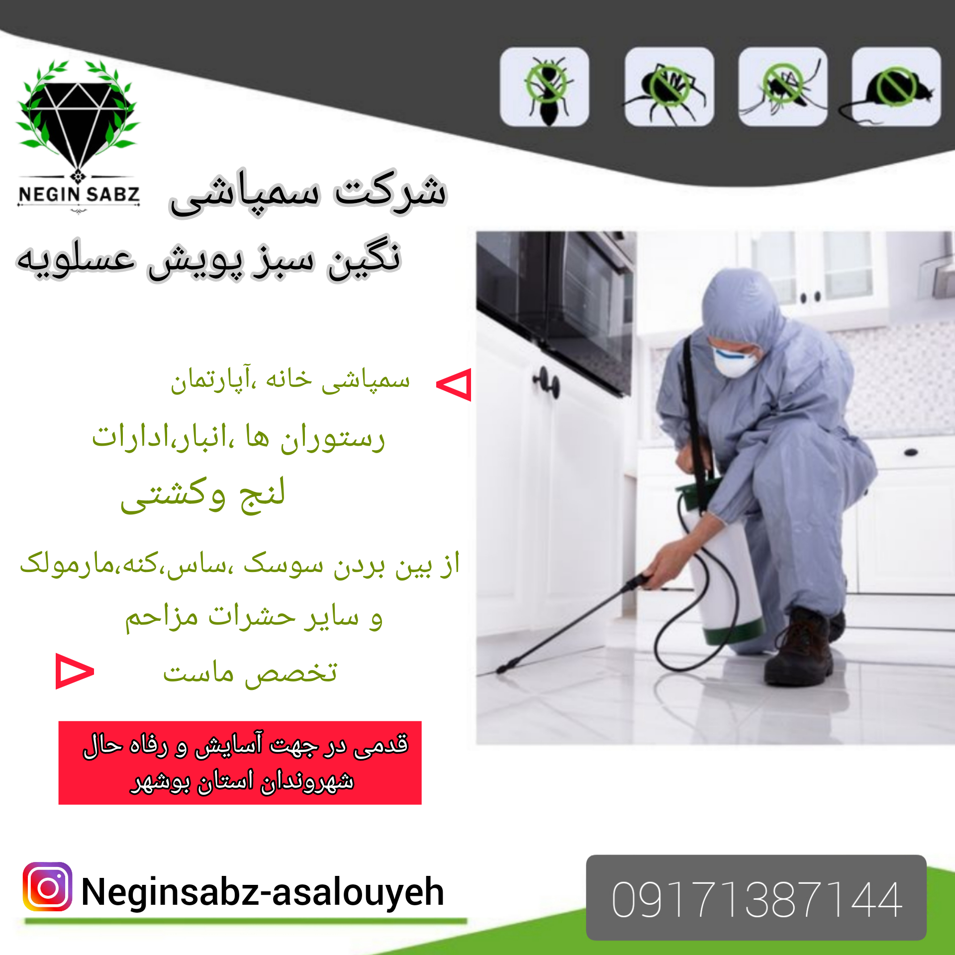 شرکت سمپاشی نگین سبز پویش عسلویه با متخصصان سمپاشی در کنار شماست ۰۹۱۷۱۳۸۷۱۴۴