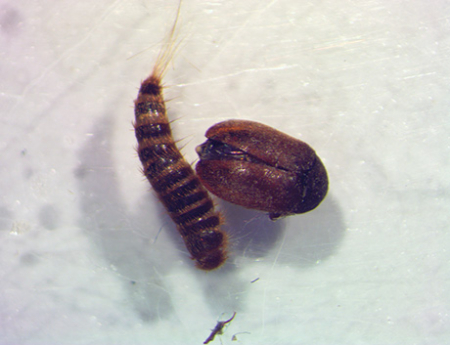 از دسته سوسکهای خانگی کوچک که بیضیشکل و معمولا به رنگهای سیاه، سفید و گاها زرد هستند. لارو این موجودات موذی معمولا بهصورت قهوهای روشن و پوشیده از مو هستند. لاروها در محیط های آلوده بهسرعت رشد کرده و به سوسک بالغ تبدیل میشوند. این موجودات ریز از وسایلی که با تاروپود بافته شدهاند و پوست حیوانات تغذیه میکنند. در نتیجه صدماتی که از جانب این حشرات وارد میشود، به الیاف و پارچه مرتبط است.